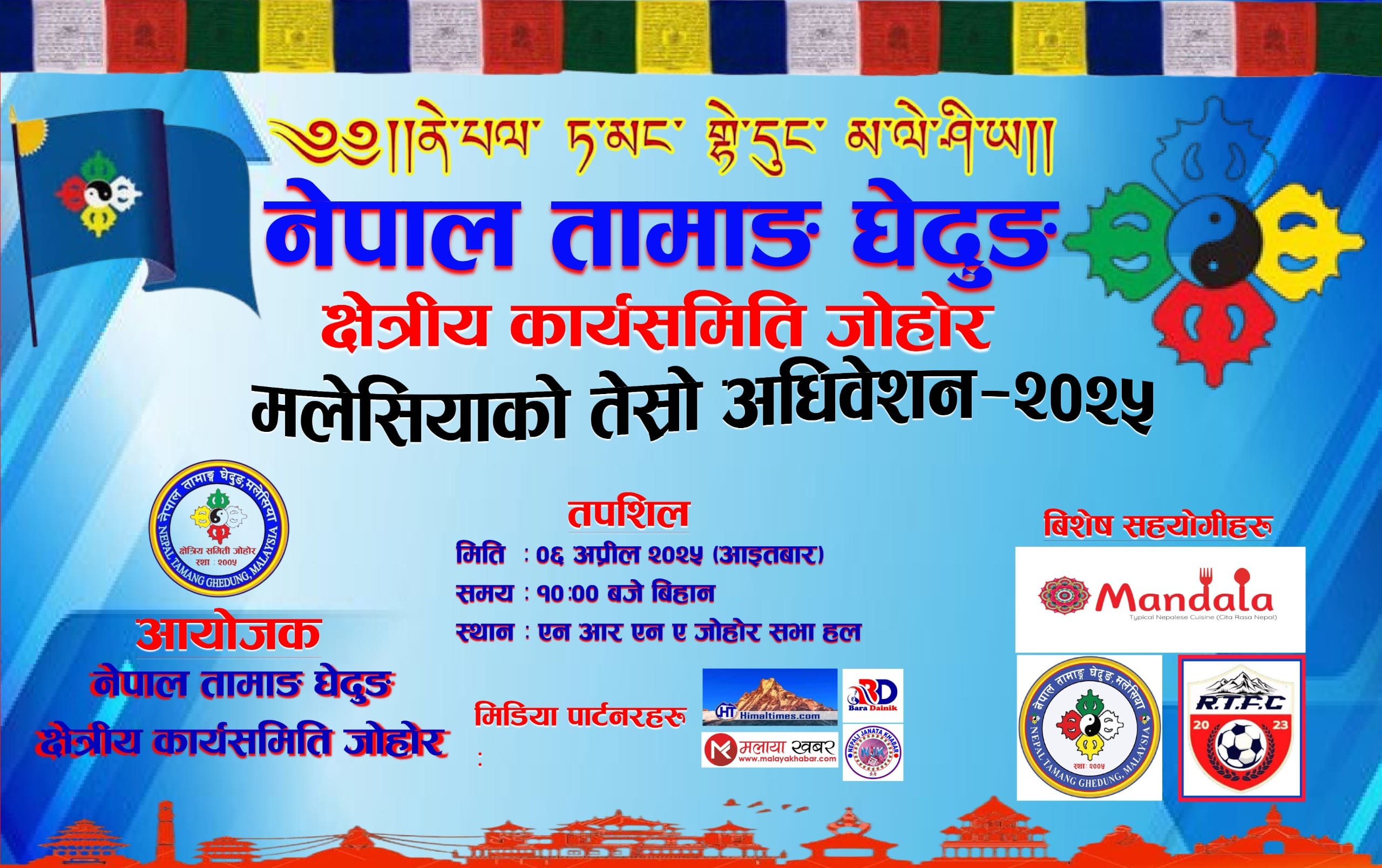 क्वालालम्पुर  नेपाल तामाङ घेदुङ प्रवास शाखा जोहोर क्षेत्रीय समिति मलेसियाको तेसो अधिवेशन हुने भएको छ।