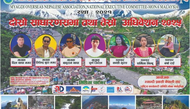 क्वालालम्पुर, मलेसिया – म्याग्दी प्रवासी नेपाली संघ, राष्ट्रिय कार्यकारी समिति (मोना) मलेसियाले आयोजना गर्न लागेको दोस्रो साधारणसभा तथा तेस्रो अधिवेशन–२०८२को सम्पूर्ण तयारी पूरा भएको छ।