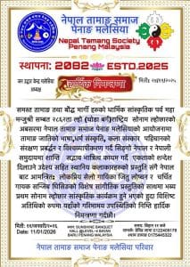 पेनाङ, मलेसिया — समस्त तामाङ तथा बौद्ध मार्गीहरूले मनाउने महत्वपूर्ण धार्मिक–सांस्कृतिक पर्व महा मञ्जुश्री सम्बत २८६२, ता ल्हो (घोडा वर्ग) राष्ट्रिय सोनाम ल्होछारको अवसरमा नेपाल तामाङ समाज पेनाङ मलेसियाले भव्य सांस्कृतिक कार्यक्रम आयोजना गर्ने भएको छ।