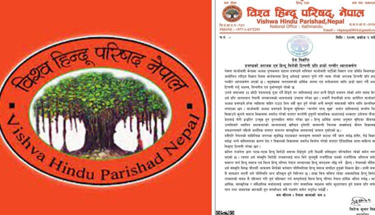 काठमाडौं । विश्व हिन्दू परिषद्, नेपालले नेकपा माओवादी केन्द्रका अध्यक्ष पुष्पकमल दाहाल ‘प्रचण्ड’ को अभिव्यक्तिप्रति गम्भीर ध्यानाकर्षण भएको जनाएको छ ।