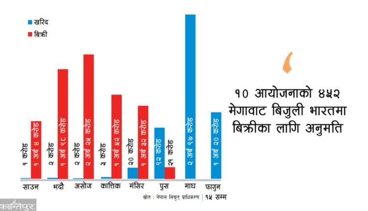 भारतलाई ८ अर्ब ३२ करोडको विद्युत् बिक्री, ५ अर्ब ३६ करोडको खरिद