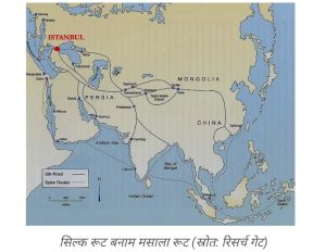 सिल्क रुट बनाम मसाला रुट (स्रोत: रिसर्च गेट)