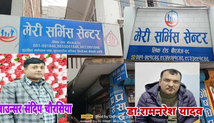 वीरगंज २९ पुस वीरगंज महानगरपालिका वडा नं. ८ लिंकरोडमा रहेको मेरी सर्भिस सेन्टर प्रा.लि.ले बिरामीहरुलाई निको पार्नुको साट्टो झनै बिरामी बनाएको घटना प्रकाशमा आएको छ । घटना गत पुस २३ गते सोमबारको हो । वीरगंज महानगरपालिका वडा नं. १७ निवासी एक महिलाले आफ्नो बन्ध्याकरण गराउन मेरी सर्भिस सेन्टरमा पुगेकी थिईन् । बन्ध्याकरण गराउन पुगेकी सो महिला सँग एउटा कागजमा दायाँ बाँया लेप्चे लगाई भर्ना गरिएको थियो । भर्ना भएकी केही समयमै अपरेश्न थिएटरमा लगी डा. राम नरेश यादवले बन्ध्याकरण (मिनी ल्याब) गरे । बन्ध्याकरण पश्चात बेलुकी बिरामीलाई घर पठाउनलाई डिस्चार्ज समेत गरियो । डिस्चार्ज गरी बिरामीलाई घर लैजानको लागि बिरामीका श्रीमान मेरी सर्भिस सेन्टर (क्लिनिक)मा पुग्दा एक व्यक्तिले तपाईको बिरामीको बन्ध्याकरण पूर्ण रुपमा सफल नभएको बताउँदा उनी आश्चर्यमा परे ।
