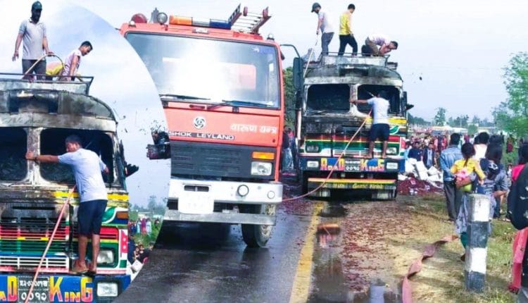 चाइनिज लाइटर रहेको ट्रक , सवारीसाधन मै आगोलागी हुँदै