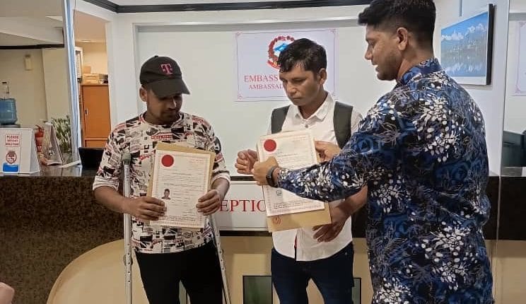 नेपाली राजदूतावास मलेसिया सहयाेगमा दुई नेपाली स्वदेश फर्किए।