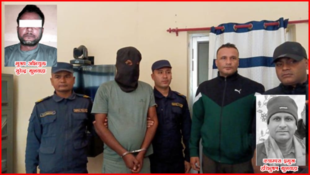 मंसिर १३ बारा___ कलैयास्थित रामराजा मोहन विक्रम शाह बहुमुखी क्याम्पसका तत्कालीन क्याम्पस प्रमुख हरिभुषण कुशवाहाको गोली हानी हत्या गरी फरार रहेका मुख्य अभियुक्त पक्राउ परेका छन्। पक्राउ पर्नेमा आदर्शकोतवाल गाउँपालिका-२ घर भएका ४१ वर्षीय सुरेन्द्र प्रसाद कुशवाहा रहेका छन्। जिल्ला प्रहरी कार्यालय बाराले पत्रकार सम्मेलन गरी कुशवाहा हत्याको मुख्य अभियुक्त सुरेन्द्र कुशवाहालाई सार्वजनिक गरेको छ । जेठ ३२ गते शुक्रवारका दिन रामराजा मोहन विक्रम शाह बहुमुखी क्याम्पसका तत्कालिन क्याम्पस प्रमुख कुशवाहाको हत्या भएको थियो। जिल्लाको आदर्शकोतवाल गाउँँपालिका वडा नम्बर २ खजुरीया भन्ने ठाउँमा उनको हत्या भएको थियो ।